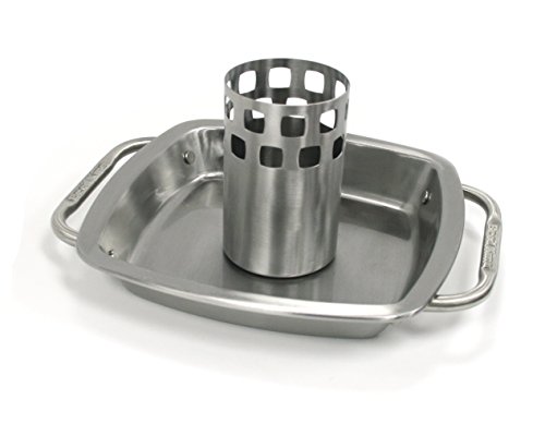 100-percent stainless steel with a super thick, 1.2mm stainless steel base and oversize 10mm handles. The screw on beer can holder has a large enough capacity to replace the beer can altogether and is vented at the top for great steaming action.