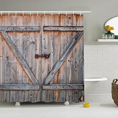 QIERAO Bathroom Shower Curtain Set (Garage Door)