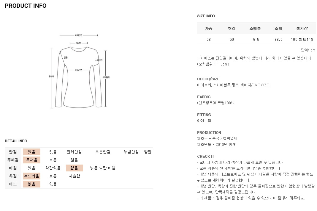 *모든 의류의 첫세탁은 드라이크리닝을 권장해드립니다*