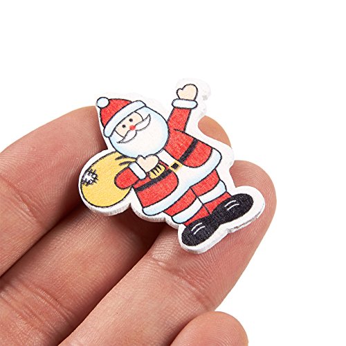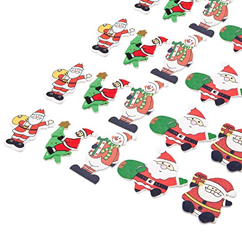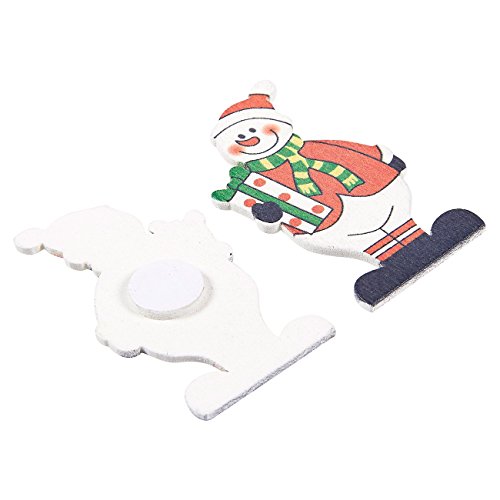 50-Pack of Wooden Christmas Ornaments - Miniature Adhesive Christmas Decorations, Small Christmas Decorations, Assorted Designs, White, Green and Red
