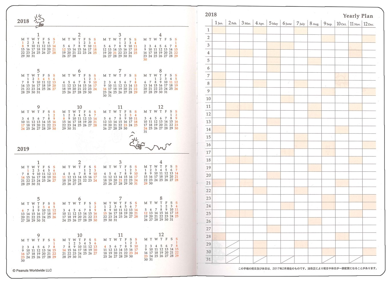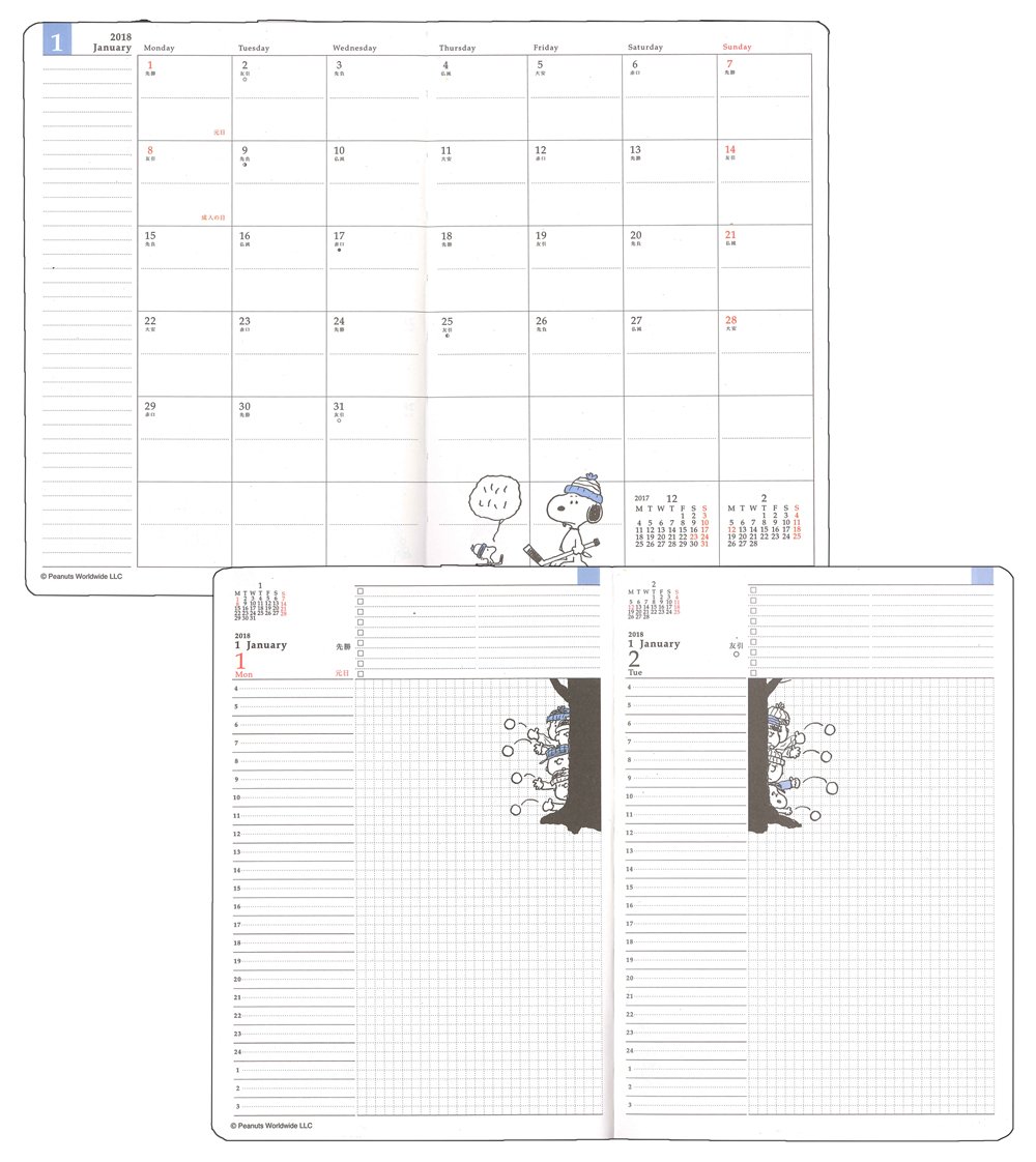 Body content: two-page vertical type monthly calendar (2017.12 to 2018.12)