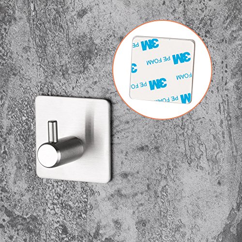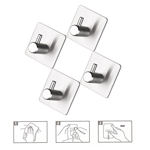 4 Pack 3M Self Adhesive Wall Hooks ,Stainless Steel Robe/Towel hooks for Bath Kitchen Garage-Water Proof Heavy Duty -By Veryke