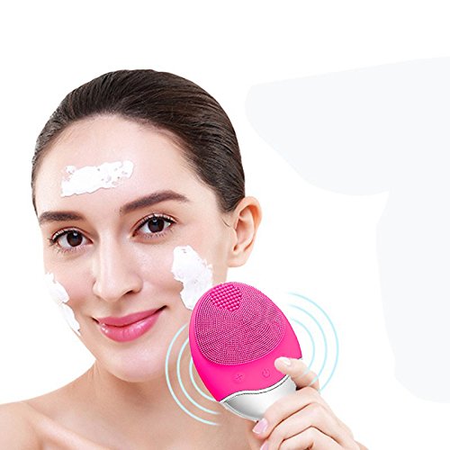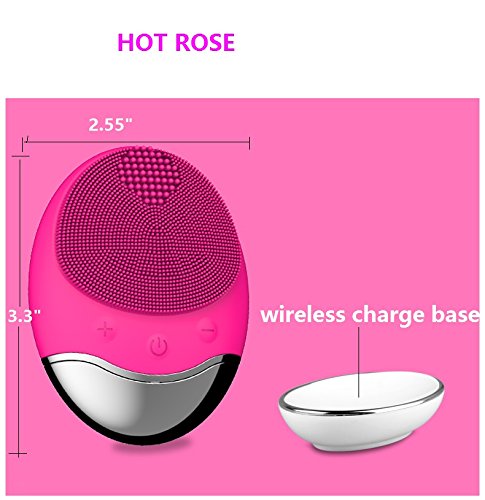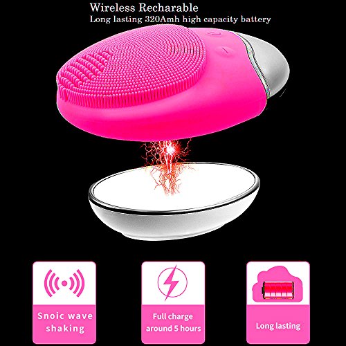 MINI LOP Sonic Facial Cleanser, Silicon Vibrating Face Cleansing Brush & Massager Newest Wireless Electric Waterproof Facial Cleansing System (Rose Pink)