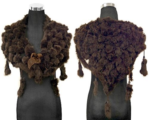 (Fur Scarf Shawl)/Accessories/Cold Weather Accessories/DIRECT FROM USA/Bridal Angora Rabbit Fur Pom Balls Triangle Shawl Shrug Scarf-Dark Brown