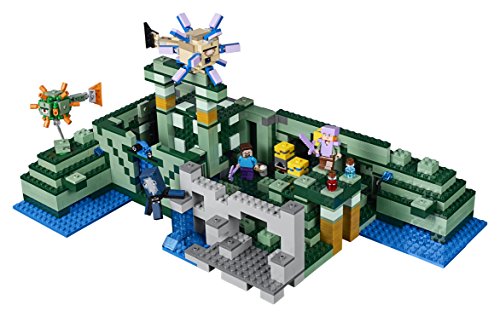 Head for the depths of the Minecraft sea to discover the Ocean Monument. Battle the elder guardian with spring-loaded shooter, activate the dry sponge function to enter the monument and locate the lever to open the treasure chamber full of golden blocks. Enjoy hands-on Minecraft adventures featuring your favorite characters and objects with this easy-to-reconfigure LEGO Minecraft set—designed for young fans of the highly successful sandbox video game. Includes Steve and Alex minifigures, plus squid, guardian and elder guardian figures.