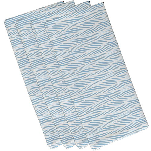 E by design N4G769BL24 Rolling Waves Geometric Print Napkin (Set of 4), 19" x 19", Light Blue