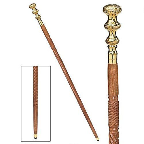 Design Toscano Collectible Authentic Polished Brass Gentleman's Walking Stick: 3 Gold Saucer