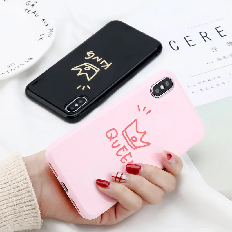 Feature 1:Glossy Letter KING QUEEN Crown Love Heart Print Design Phone Cases