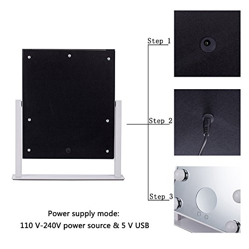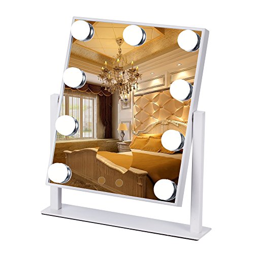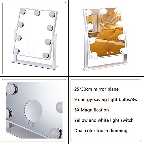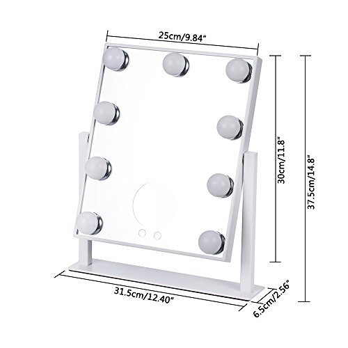 LED 9 Bulbs Vanity Lighted Hollywood Makeup Mirror with Dimmer Stage Smart Touch Screen desktop cosmetic Mirror &Two Power Supply Mode,Batteries not Included--Adjustable Brightness (white)
