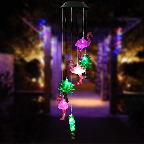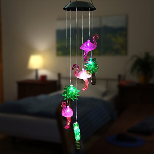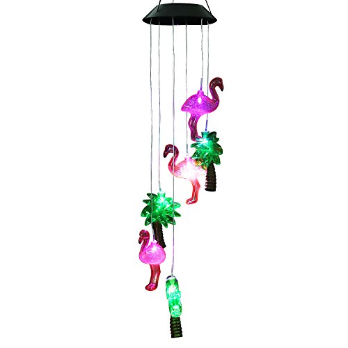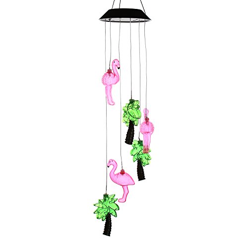 Changing Color Solar Powered Flamingo Wind Moblie LED Light, AceList Spiral Spinner Windchime Portable Outdoor Chime for Patio, Deck, Yard, Garden, Home, Pathway