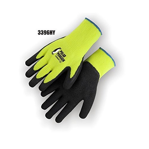 Majestic Glove 3396HY/10 Industrial Gloves, Rubber Palm, Winter, Knit, Large, Black/Yellow (Pack of 12)