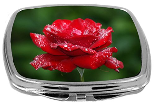 Rikki Knight Compact Mirror, Red Rose with Water Droplets on Green, 3 Ounce