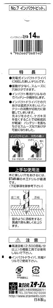 · Reducing the cutting resistance when using the impact driver by making the leading screw and the scriber blade smaller than the conventional drill, the battery lasts longer