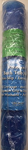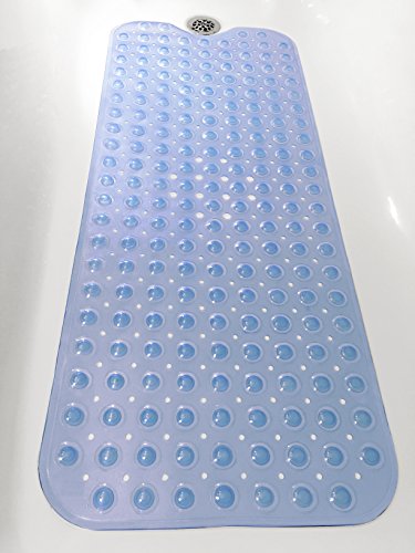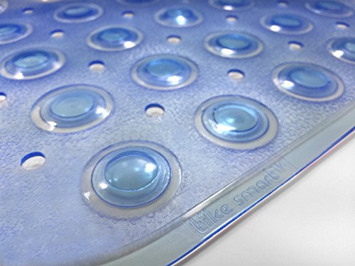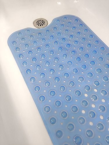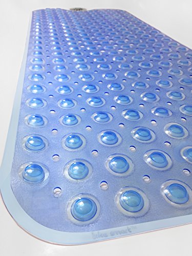 Tike Smart Extra-Long Non-Slip Bathtub Mat - Safe & Clean, Anti-bacterial, Machine-washable, Superior Grip and Drainage - Non-Slip Bath Mat - Vinyl - Blue -...