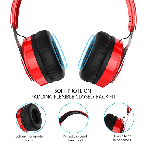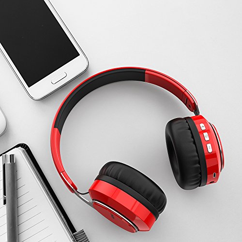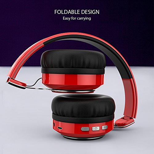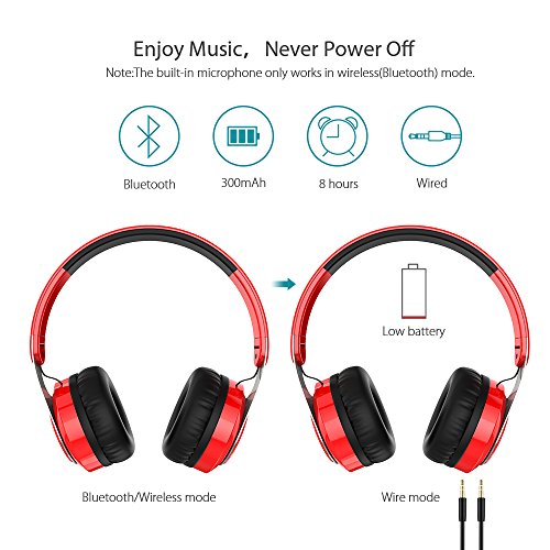 COMFORTABLE AND EASY TO USE: The speakers have an ergonomic design with stretchable headband (fits any head),advanced built-in microphone,and comfortable ear pads,you also can fold them into a compact form that's easy to carry everywhere you go.The headphones have low battery alerts,smart power outage when fully charged and even can be used as wired headphone through the 2.5 m long audio cable that comes free with the speaker.