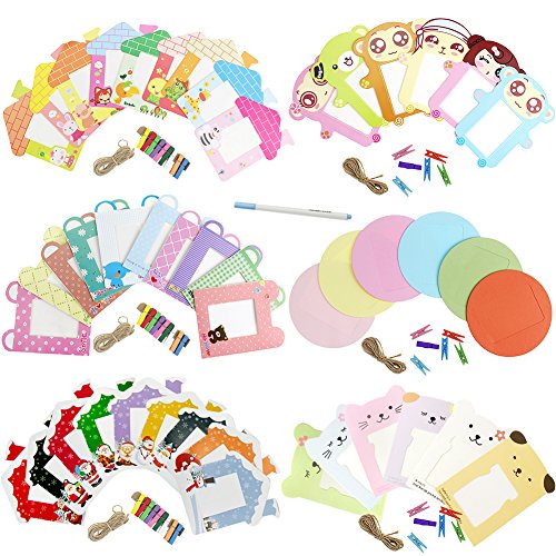 Paper Photo Frames - 6 PCS Solid Round, 6 PCS Cute Animal, 6 PCS Cute Bear, 10 PCS Little House, 10 PCS Lovely Rabbit, 10 PCS Santa Claus & Christmas Tree; 1 PCS Card Mark Pen