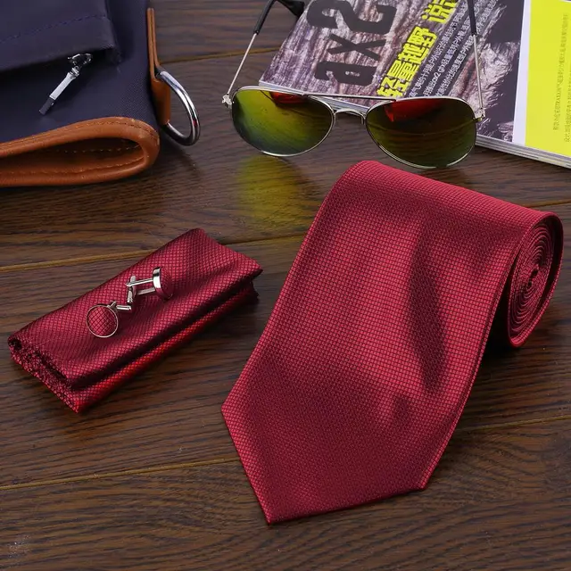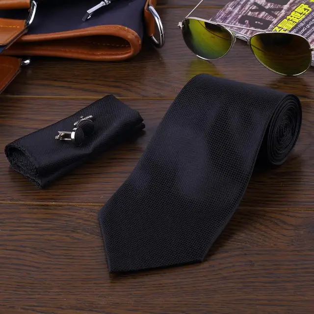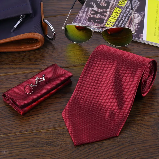 | [해외]패션 8 색 캐주얼 슬림 일반 남성 솔리드 스키니 목 파티 웨딩 넥타이 넥타이 넥타이 손수건 커프스 세트 2017 핫 판매 |