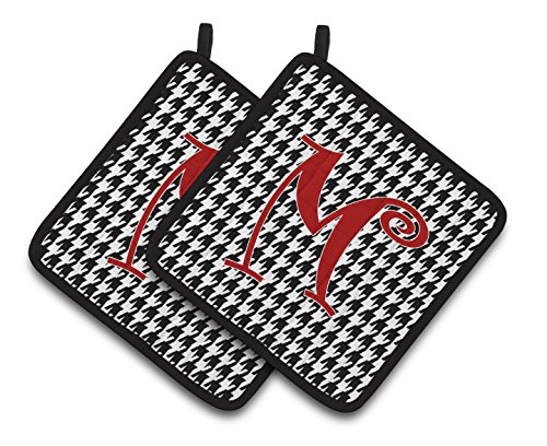 Caroline's Treasures Monogram Initial M Houndstooth black Pair of Pot Holders CJ1035-MPTHD, 7.5HX7.5W, Multicolor