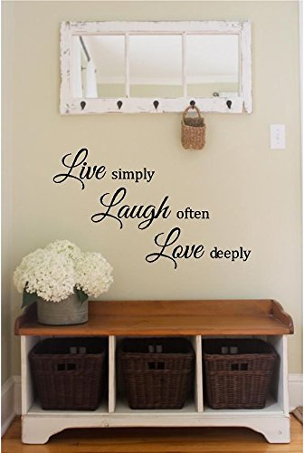 Live Simply Laugh Often Love Deeply Vinyl Decal - Wall Decal Quote, Live, Laugh, Love, Vinyl Quote, Vinyl Wall Decal, Living Room, 25.5" W x 15.5" H (Black, Matte)