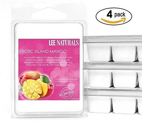 Lee Naturals Summer - (4 Pack) EXOTIC ISLAND MANGO Premium All Natural 6-Piece Soy Wax Melts. Hand Poured Naturally Strong Scented Soy Wax Cubes