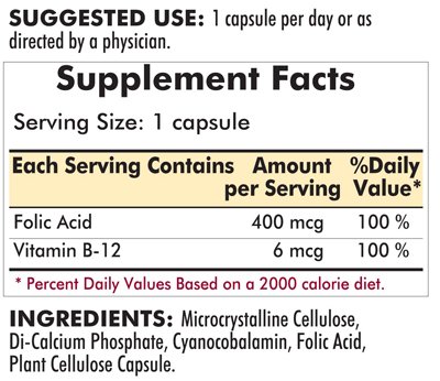 -. Feature : Supports folate chemistry and the production and maintenance of new cells. / STORE IN A COOL DRY PLACE AND TIGHTLY CAPPED. KEEP OUT OF THE REACH OF CHILDREN. / Vitamins / Capsules / 200 ct