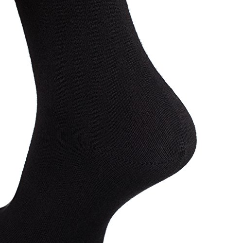 -. Feature : USA DESIGN AND EUROPEAN manufacturing ensure perfect quality of our dress socks for men / DURABLE AND LONG-LASTING are most important P.R.Iorities when we design this socks men pack / OPAQUE AND BREATHABLE features of these crew cotton mens black dress socks provide your feet stay comfortable / SUPERIOR QUALITY YARN: These black socks are made up of a blend of 70% cotton, 20% polyester, 8% polyamide and 2% elastane. The process of production imparts these black athletic or work socks high durability, improves their lustre and results in sheen appearance, improves crew socks resistance to mildew and increases their affinity to lint. This ensures that you get extremely good quality boys dress socks that not only look great but are excessively soft and comfortable / 100% RISK-FREE SATISFACTION GUARANTEE - We also offer you 100% Risk-free satisfaction guarantee to let you buy with confidence; no questions asked. However, we are quite sure that you will find this pair of Sox for Men as an indispensable companion as the socks would provide you the required warmth, protect your feet from abrasion and impacts and would look great with any formal or casual dressing. Our socks come in sizes based on US shoes sizes, i.e., 6-9, 9-11, and 11-13