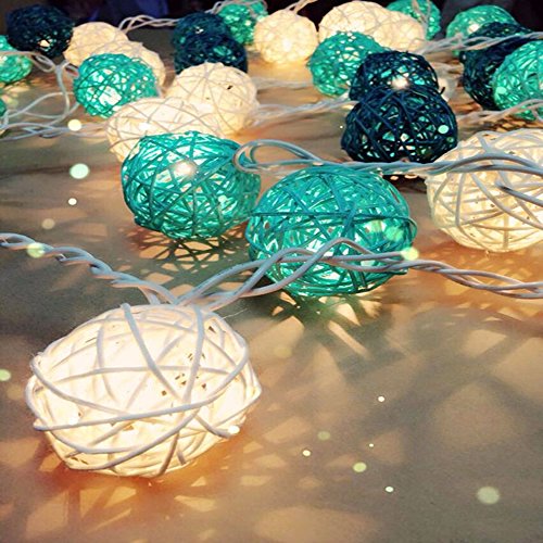 Spritech(TM) 3.5M 35 Bulbs Plug-in Rattan Lights Sepak Takraw Ball String Lights Takraw Lantern Night Lights Fairy String Seasonal Rope Lights for Christmas Party House Bar Decorations Lake Green