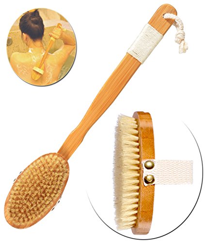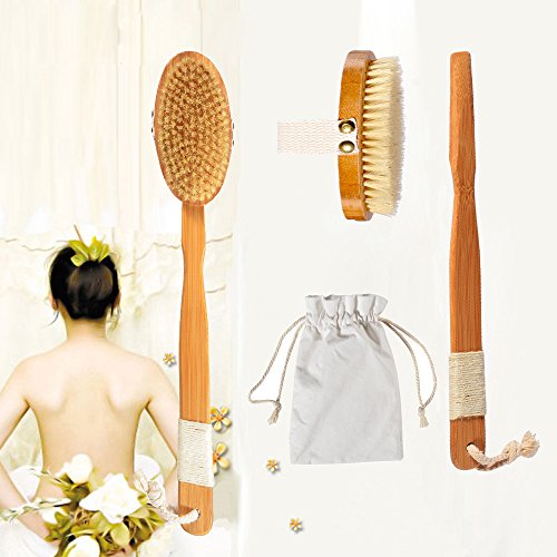 ★HUMANIZED NON-SLIP AND DETACHABLE DESIGN-EASY TO CARRY -- There is a hemp rope wrapped on the handle to avoid bath brush will not slip from your wet hands by accident and a groove on the head perfectly fitting the handle to avoid slipping off. Our dry skin brush is contained with a bamboo brush head and a detachable long handle.Whether you are on a business trip or travel you could get a good experience of wet/dry brushing