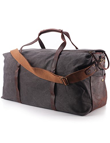 -. Title : ZEKAR Waxed Canvas Leather Travel Duffel, Weekender Bag, Large for Family Trip