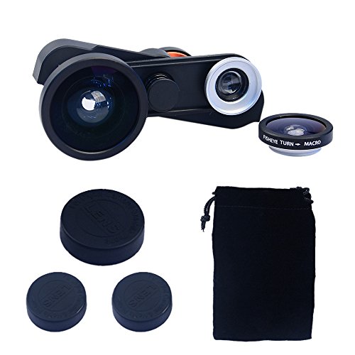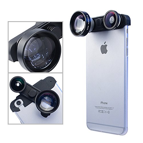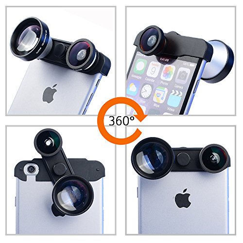 - Fisheye lense and macro lense in a 2 in 1 set: these two small lenses are screwed together for easy storage. To use the back fisheye, simply attach both lenses to the clip provided. To use the macro lens, simply unscrew the fish eye lens.