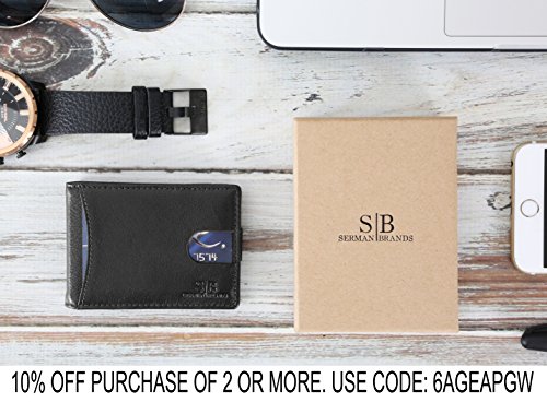 Binding : Apparel Product Description SERMAN BRANDS Genuine Leather Wallets RFID Blocking - Theft Proof Wallet- Protect Your Identity The Secret to Keeping Your Data Safe! Identity Theft is at All Time High! Unless properly shielded, your card-based data is readily available when any active reader is in range! The Best Way to Protect Your Smart Cards from unwanted capture of data from contact less cards issued by banks, governments and other institutions such as: ? Credit or Debit (for example: MC PayPass, VISA PayWave, AMEX expresspay, INTERAC Flash, etc.) ? Enhanced driver's license, Hunting and fishing license ? Access / security control, Employee / School ID ? Health insurance, Medical ID ? Gift, Membership, Library ? Transit / Park pass Protects against access by NFC-equipped Smartphones Some recent smartphones are equipped with NFC technology which can also read the data on your Cards easily SERMAN BRANDS is a team of free thinkers with varied disciplines from design, engineering, marketing and finance. Together, they share their diverse strengths and united passion of creation to bring to you NEW life-easing everyday must haves. "We love all things beautiful, functional and well crafted. Today there's a growing community of people who appreciate and hunt for this union of solid functionality, minimalist style combined with great craftsmanship made from honest materials. We believe that these are the core value of our creations and customers. 0 |