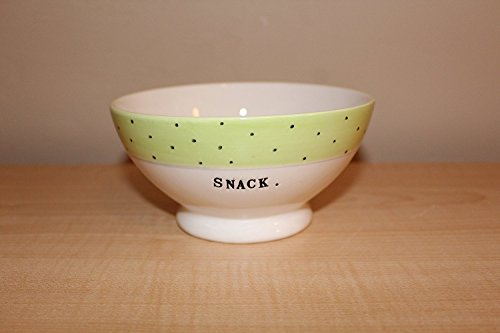 Rae Dunn by Magenta typeset SNACK polka dot footed cereal bowl with green rim