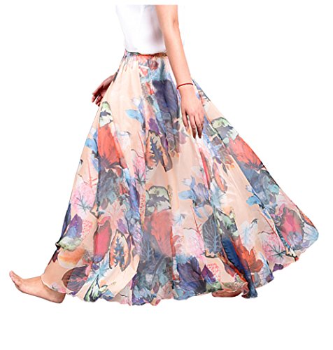 -. Title : EIMEI 花柄シフォン マキシスカート ロング丈 脚長効果 ウェストゴム 裏地付き 5色 レディース Aライン フレア