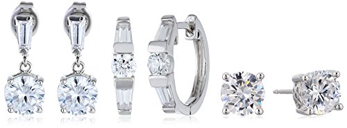 Sterling Silver Cubic Zirconia Set of Three Earrings Jewelry Set