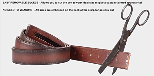 -. Binding : Apparel -. Brand : Mark Fred -. Department : mens -. Feature : MADE WITH PREMIUM LEATHER, so they are meant to last and will withhold any work, play and an evening out on the town. / THIS BELT IS MADE TO Cut Down To Custom Size! / IMPRESS YOUR FAMILY AND FRIENDS, show up with style! -. IsAdultProduct : 0 -. ProductGroup : Apparel -. ProductTypeName : ACCESSORY -. Title : Mens Belt Genuine Leather Ratchet Dress Belt With Automatic Leather Buckle