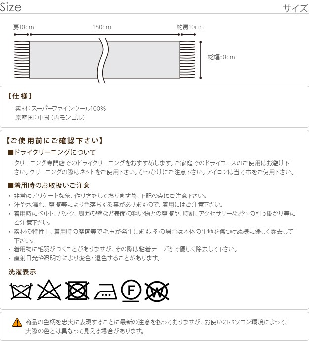 ※メーカー直送のため代金引換はお受けできません。※沖縄・一部離島は別途送料がかかります。お見積もりいたしますのでお問い合わせ下さい。【カラーバリエーション】ベージュx生成・ネイビーxブルー【仕様】ウール100%(スーパーファインウール)【サイズ】幅200x奥行50cm重量:約0.24kg房長さ:両サイド各10cm株式会社ナカムラ(61700053)