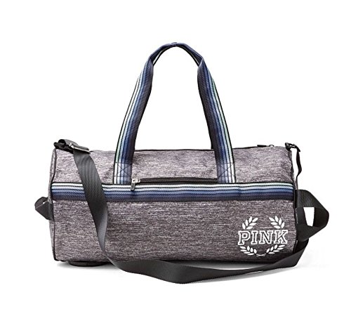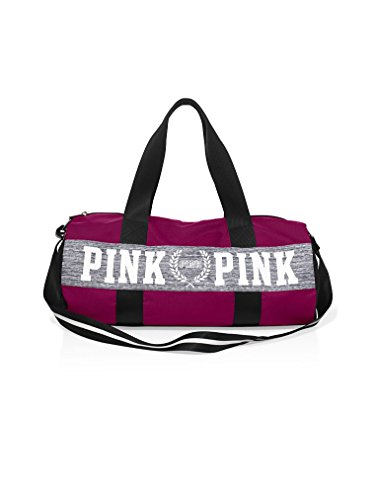 Product Description Arm candy alert! This duffle bag is perfect for the gym, quick getaways or packing up for Spring Break. Only by Victoria's Secret PINK. Top zipper Inside hanging pocket Long adjustable strap Two-handle straps Mesh exterior pocket 10"H x 20"L; 9 1/2" drop handle Imported polyester 0