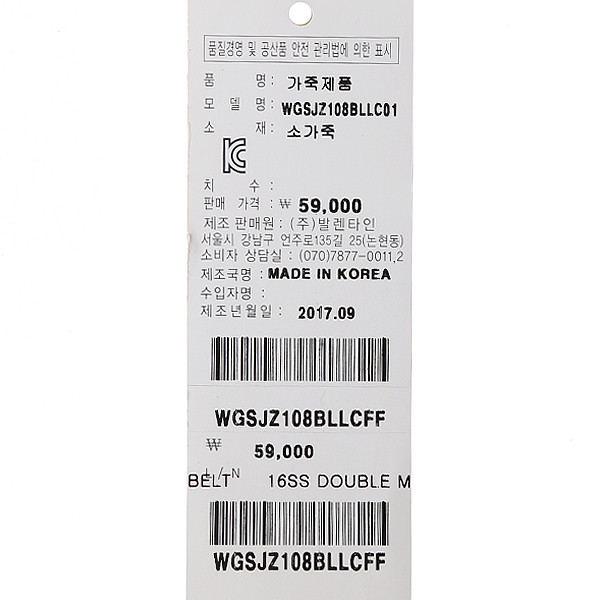 버클:가로5cm, 세로3.8cm & 소가죽:폭3cm, 길이110cm