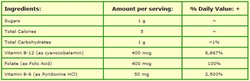 -. Feature : Promotes red blood cell synthesis, supporting healthy protein metabolism, and supporting normal homocysteine levels / Natural berry flavor / Suitable for Vegetarians
