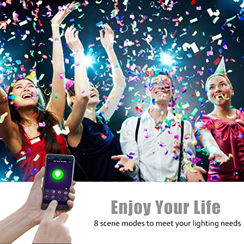 - 【MAKE HOME LIGHTING COLORFUL】Smart Wi-Fi bulbs can be controlled as a group, and your favorite settings can be saved as scenes accessible in the smart bulb.There are Night Mode, Reading mode, Party Mode, Leisure mode, soft mode, Rainbow mode, Shine mode and Gorgeous mode. Create a Theater scene that dims the lights for movie night, a Party scene that enlivens rooms with bright, colorful light, and a Candlelit scene that creates warm, low lighting for a romantic atmosphere