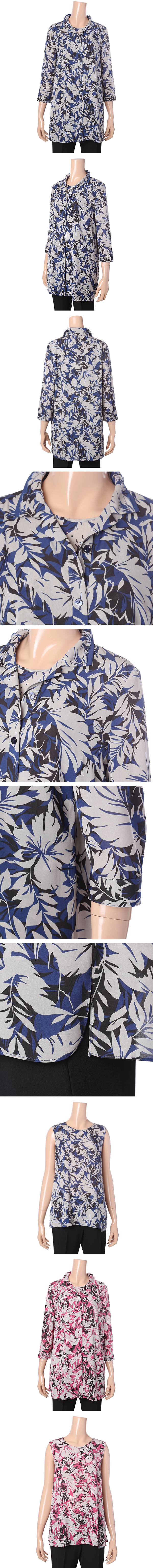 8부 소매의 시원한 꽃무늬 프린트의 앙상블 자켓 세트 상품입니다.