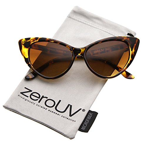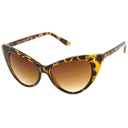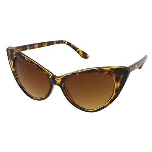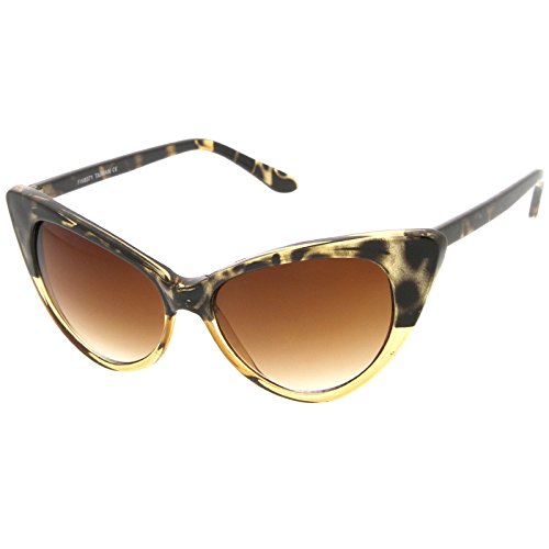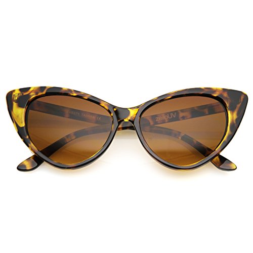zeroUV - Women's Retro Oversized High Point Cat Eye Sunglasses 55mm (Yellow-Tortoise / Brown)