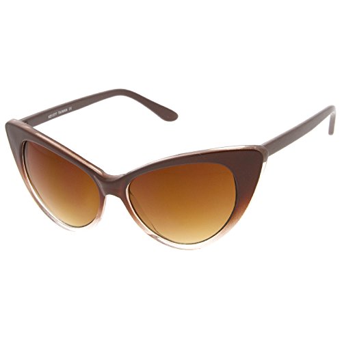 zeroUV - Women's Retro Oversized High Point Cat Eye Sunglasses 55mm (Brown-Fade / Amber)