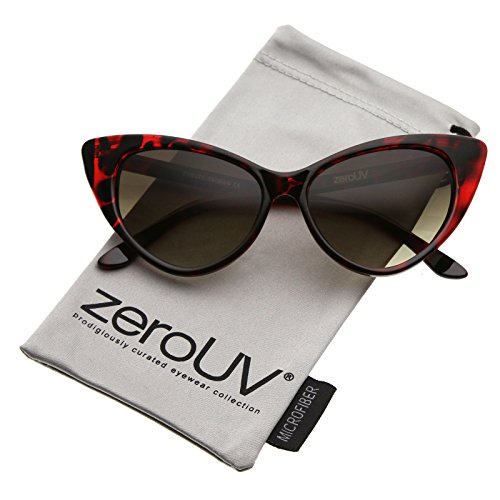zeroUV - Women's Retro Oversized High Point Cat Eye Sunglasses 55mm (Red-Tortoise / Lavender)
