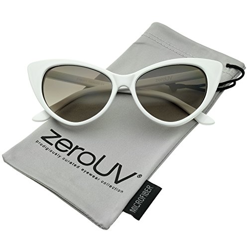 zeroUV - Women's Retro Oversized High Point Cat Eye Sunglasses 55mm (White / Smoke Gradient)