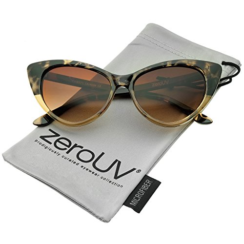 zeroUV - Women's Retro Oversized High Point Cat Eye Sunglasses 55mm (Brown-Tortoise-Fade / Amber)