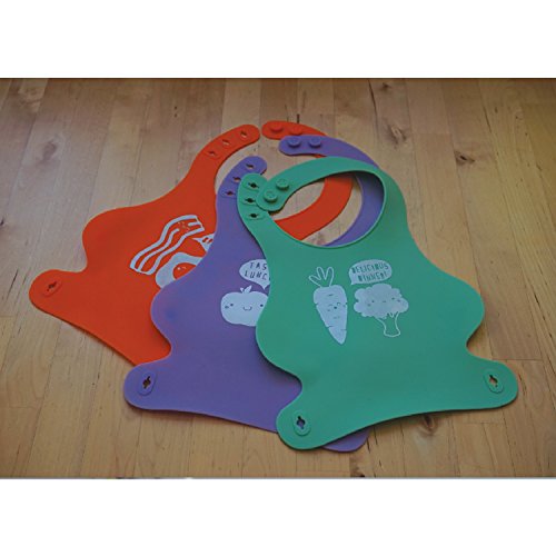-. Title : 3 Pack Soft Silicone Roll up Baby/Toddler Bibs Creatively Designed By Monkey Loves Tom - Food Catcher Pocket, Waterproof and Easy to Clean. Breakfast, Lunch and Dinner Made Easy!