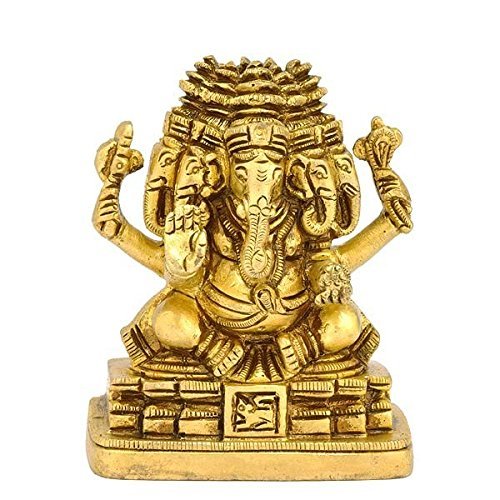 Five Headed Panchmukhi Ganesha Brass Statue 2860 (8.26 CM, 6.99 CM, 3.18 CM) Golden