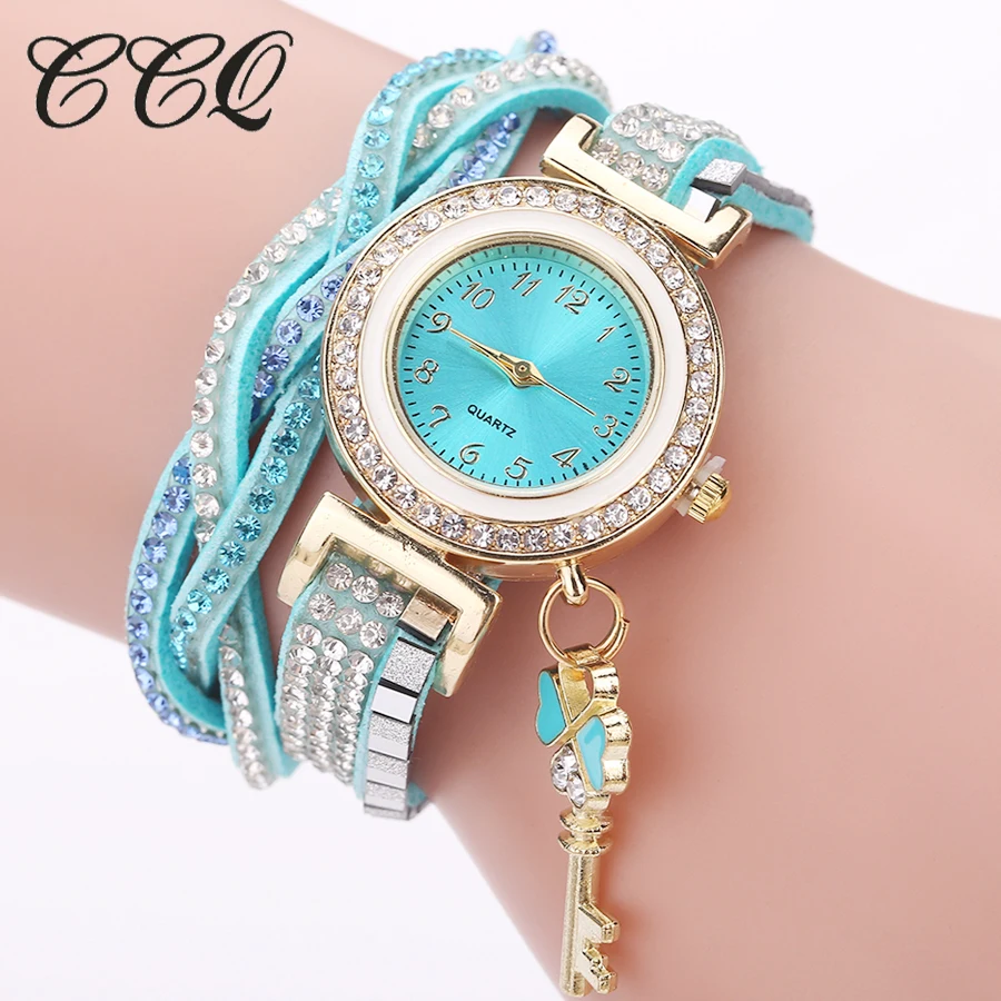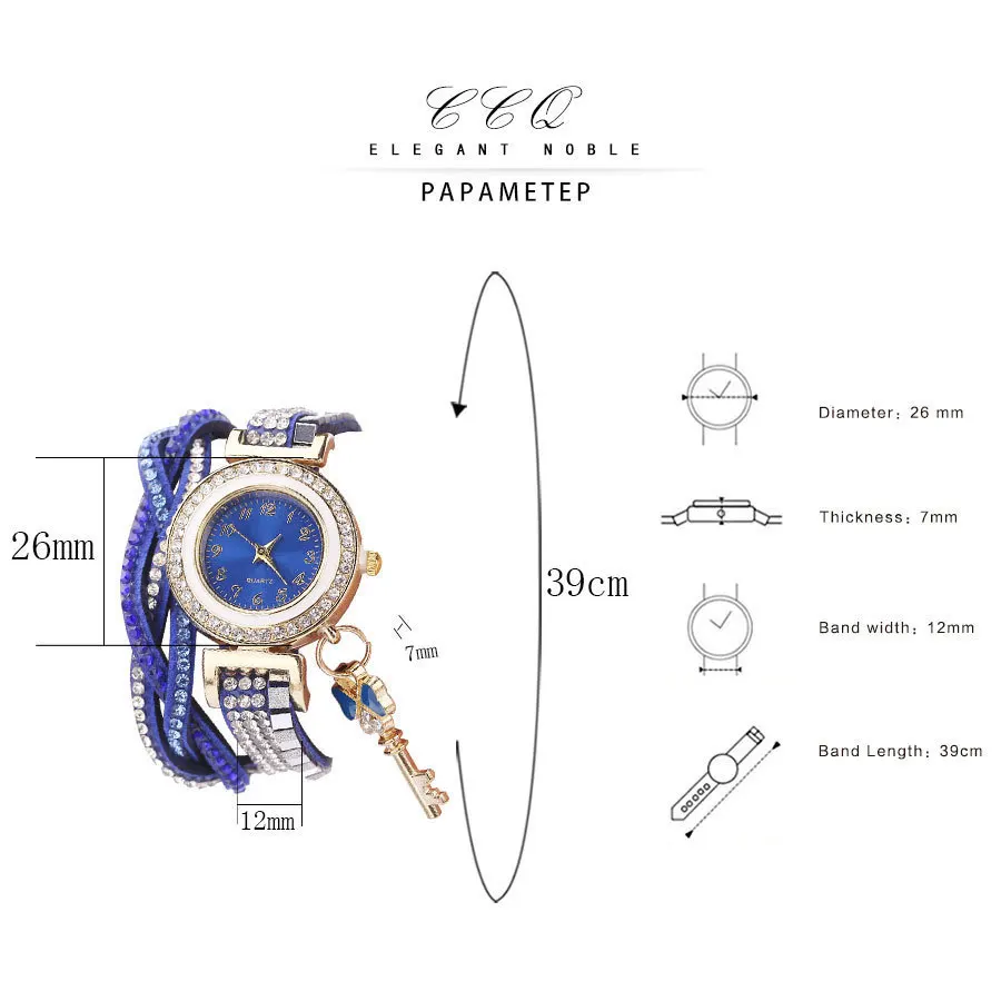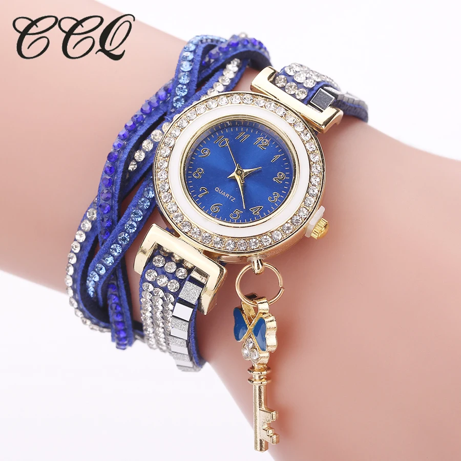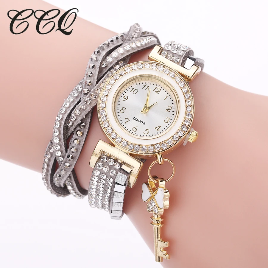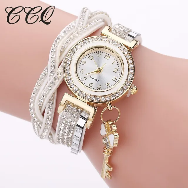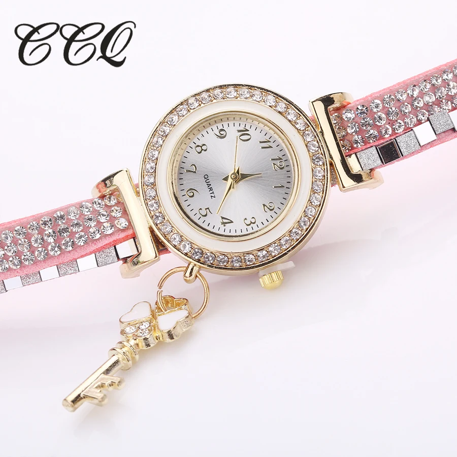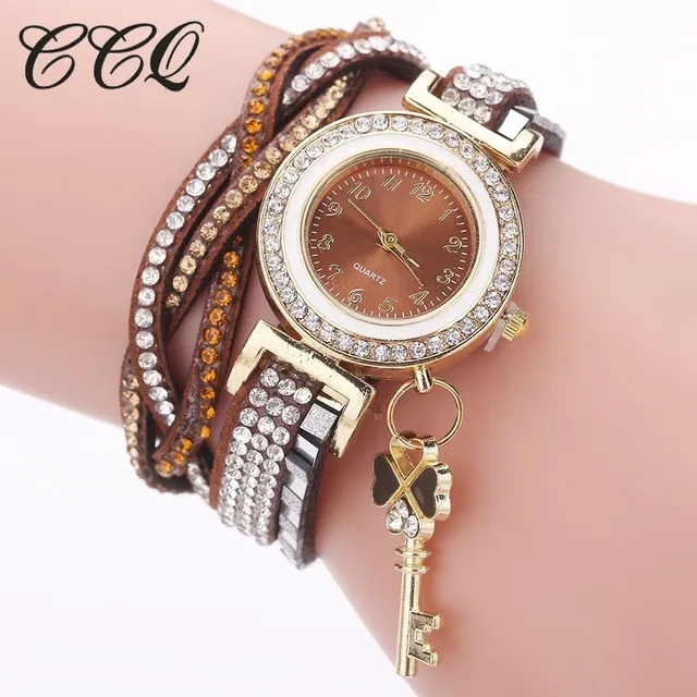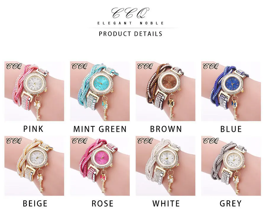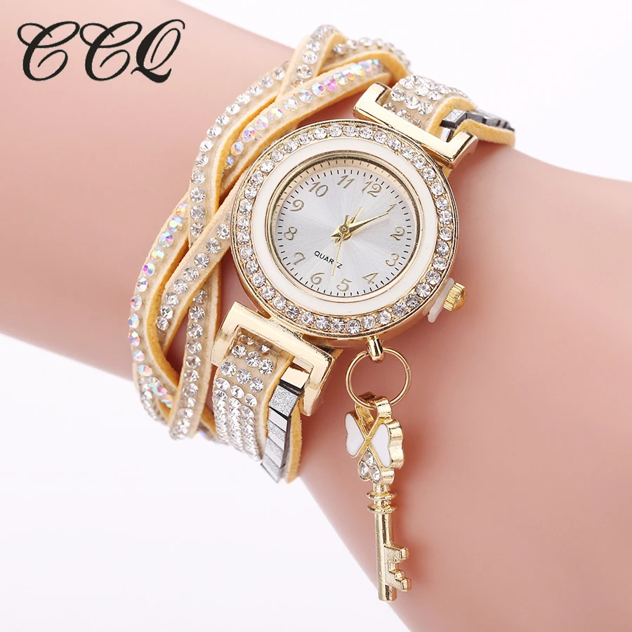 | [해외] CCQ 브랜드 여성 팔찌 시계 캐주얼 패션 숙녀 가죽 크리스탈 키 펜던트 시계 시계 드롭 배송 Relogio Feminino |