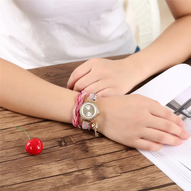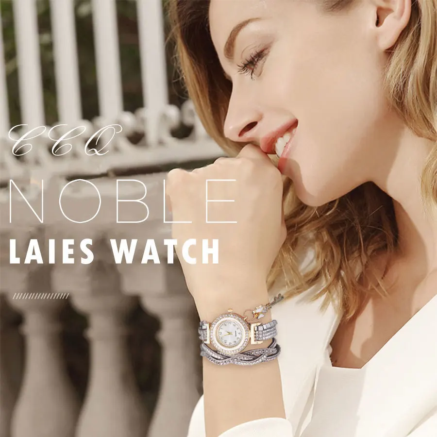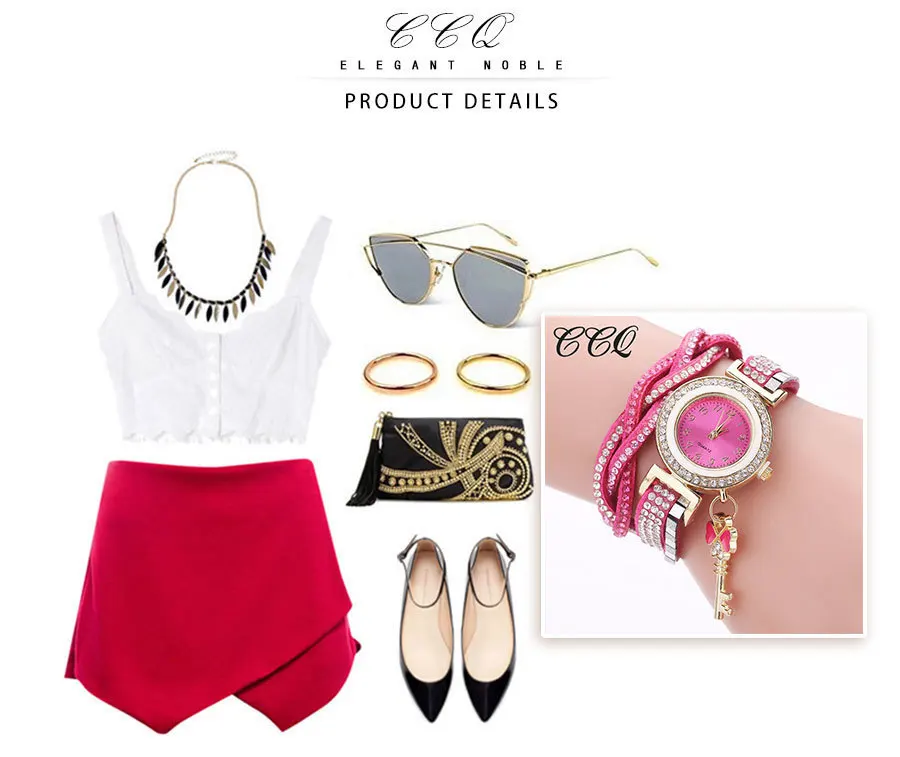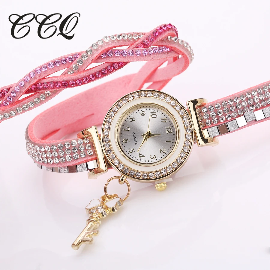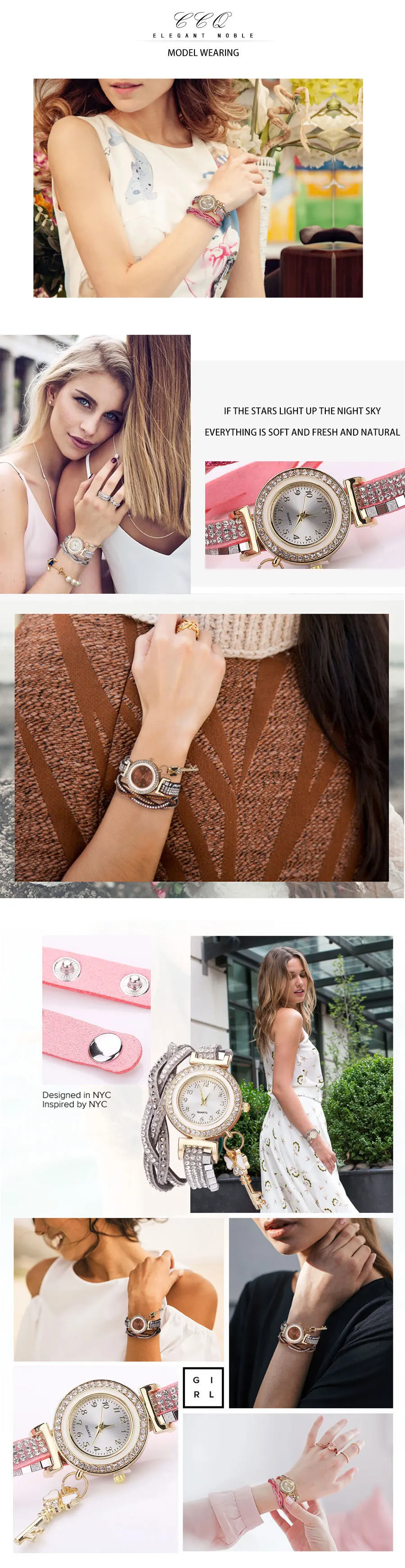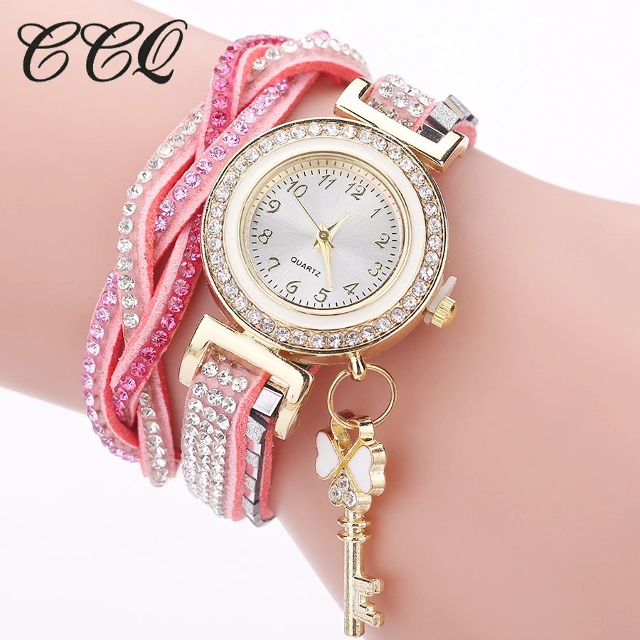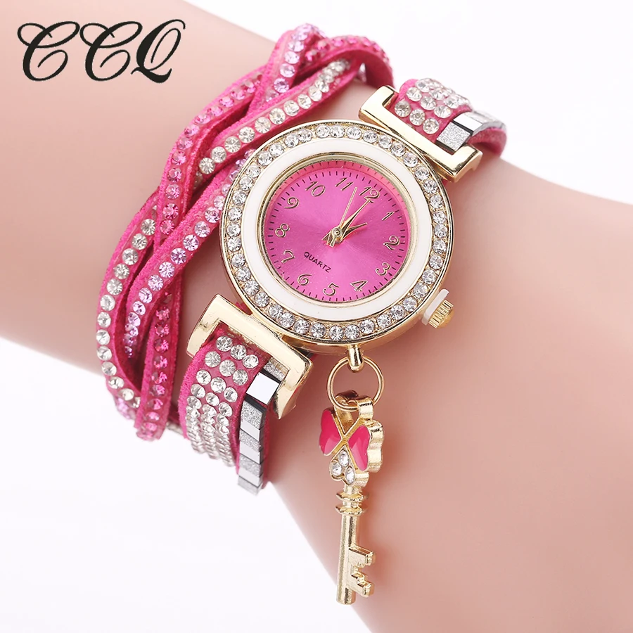 | [해외] CCQ 브랜드 여성 팔찌 시계 캐주얼 패션 숙녀 가죽 크리스탈 키 펜던트 시계 시계 드롭 배송 Relogio Feminino |
